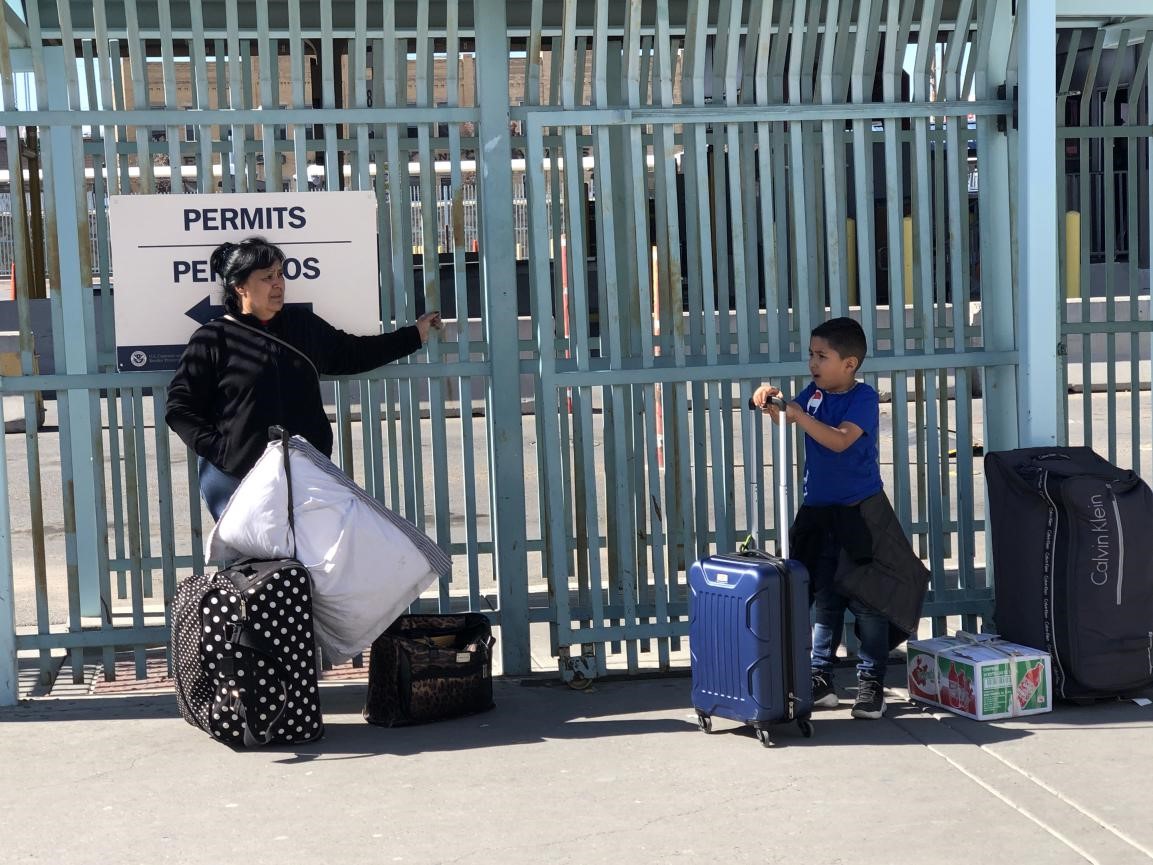 Two immigrants from Central America stand in front of a border checkpoint in El Paso. (Photo by Zhang Mengxu / People's Daily)