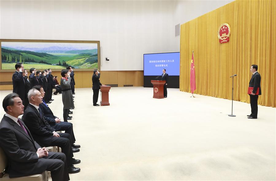 In a speech after the ceremony, Premier Li said that it is a basic code of conduct for everyone working in the public sector to be loyal to the Constitution and abide by the laws, and they must bear in mind the goal of securing a better life for the people.