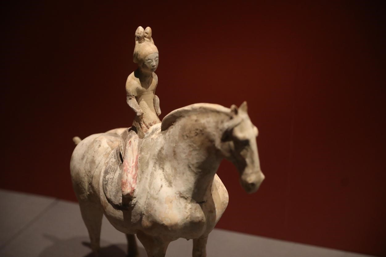 A painted porcelain figurine of a man riding a horse. (People’s Daily Online/ He Zhuoyan)