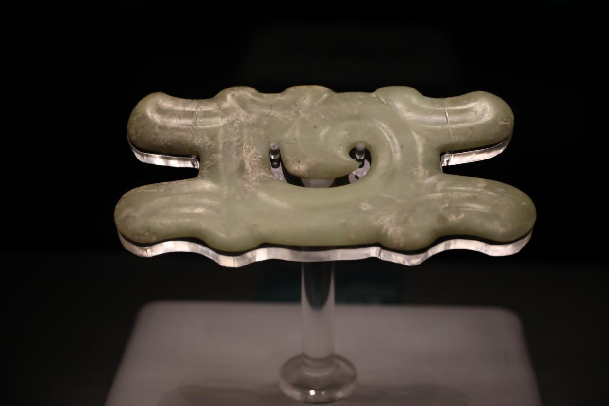 This cloud-like jade hook is estimated to be 5,000 to 5,500 years old. (People’s Daily Online/ He Zhuoyan)