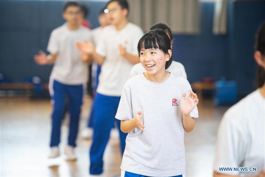 Students have PE class at the Pui Ching Middle School in Macao, south China, March 21, 2019. On Dec. 20, Macao will celebrate the 20th anniversary of its return to motherland. Over the past two decades, the special administrative region has made great strides in economic development and achieved prosperity and stability under the "one country, two systems" principle. (Xinhua/Cheong Kam Ka)