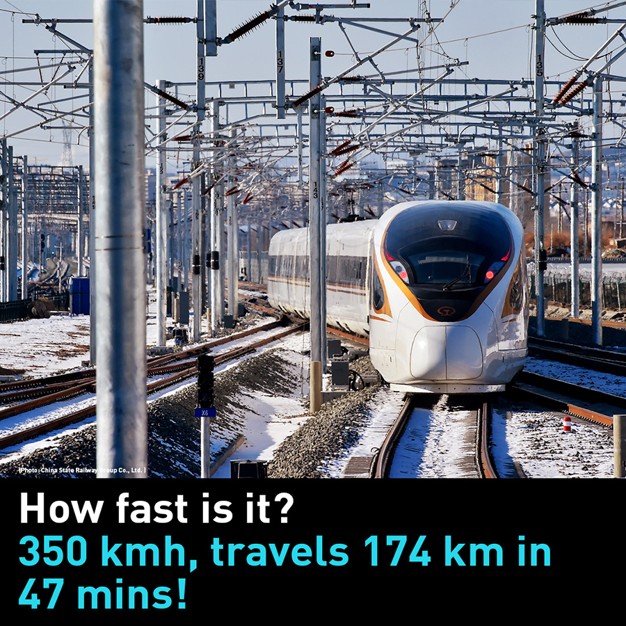 The 174-kilometer line shortens the trip between the two cities from over three hours to only 47 minutes, according to China Railway Corporation.