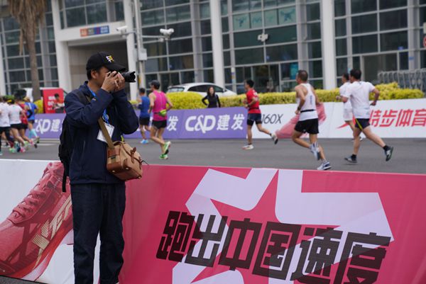 A photographer takes pictures of runners during a race. (People’s Daily Online/Xia Xiaolun)