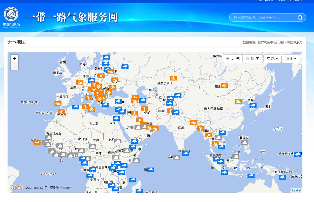 A weather forecast website (http://ydyl.cma.gov.cn/) offering services for major cities in all 137 countries that have signed Belt and Road cooperation documents with China was officially launched on Jan. 1, 2020.