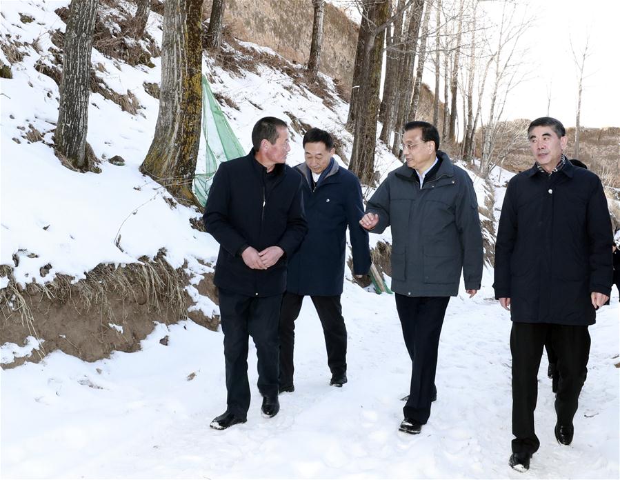 Chinese Premier Li Keqiang, also a member of the Standing Committee of the Political Bureau of the Communist Party of China (CPC) Central Committee, visits the Heicheng Village in Xining, capital of northwest China's Qinghai Province, Jan. 21, 2020. Li made an inspection tour in northwest China's Qinghai Province from Tuesday to Wednesday. (Xinhua/Ding Lin)