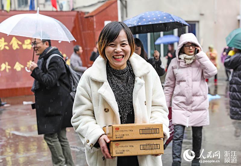 Liu carries some special purchases made for the Spring Festival, Jan.15. (Photo/Zhang Yongtao)