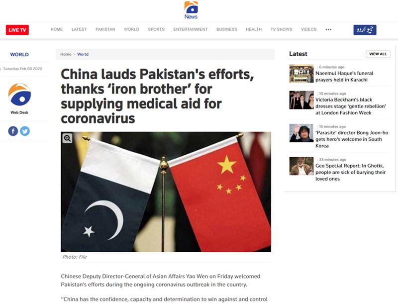 In addition to information about local epidemic control and prevention and treatment of local patients infected with the virus, the media group also pays close attention to the general situation of the epidemic in China, Pakistan's assistance to China, and responses and opinions of Chinese media and citizens.