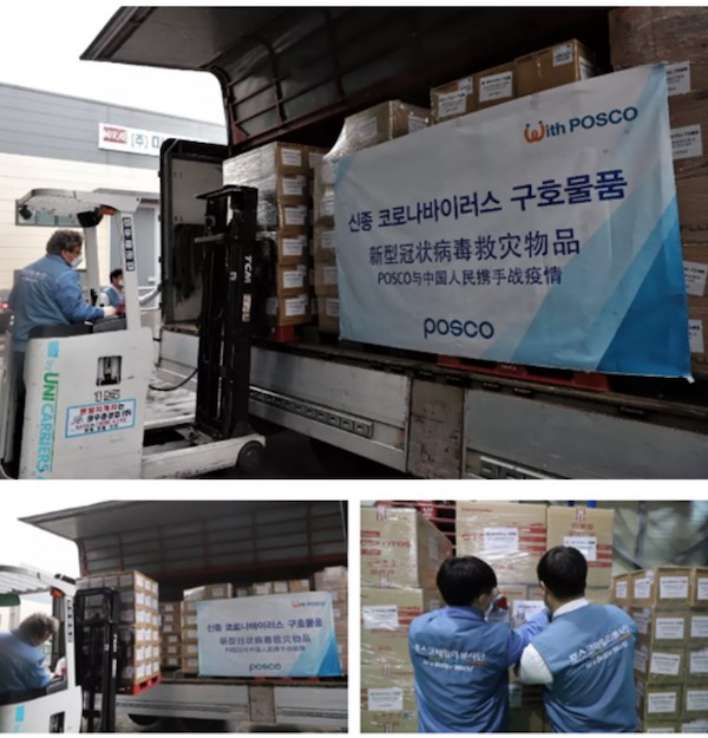 POSCO China donates materials to the novel coronavirus epidemic-hit regions. (Photo courtesy of Canon China)