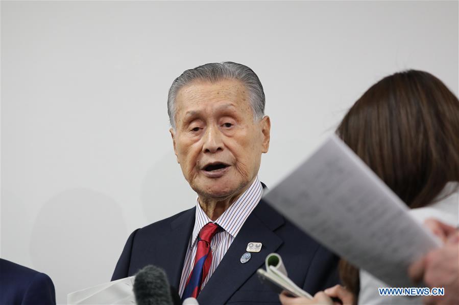 Mori Yoshiro, president of Tokyo Organising Committee of the Olympic and Paralympic Games (Tokyo 2020), speaks in a media huddle after participating the IOC Executive Board Meeting via video in Tokyo, Japan, March 4, 2020. (Xinhua/Du Xiaoyi)
