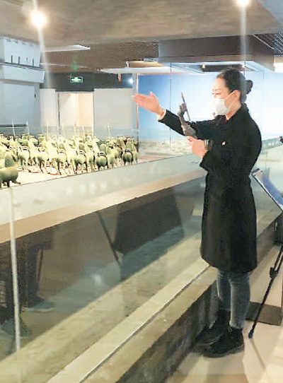 On March 14, Bai Xuesong, a guide at the Beilin Museum in Xi’an, northwest China’s Shaanxi province, hosted a live broadcast showcasing the collections at the museum, which attracted over 300,000 viewers.