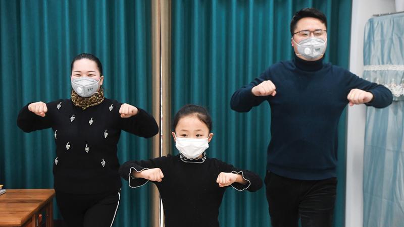 A family in Chongqing exercises at home. (Photo: Wang Quanchao/Xinhua)