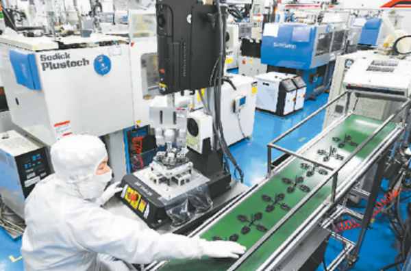 Photo taken in a foreign trade company in an industrial park of Jiangsu Haizhou Economic Development Zone shows employees working on a production line of cameras for a well-known brand of mobile phones. Jiangsu Haizhou Economic Development Zone in Lianyungang, east China’s Jiangsu province, has recently introduced a series of measures to cut taxes and fees in an effort to help foreign trade enterprises cope with the challenges brought about by the epidemic. (People’s Daily/Geng Yuhe)