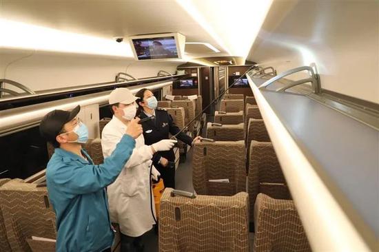 On April 6, a staff member at Hankou railway station gets ready to examine passengers leaving Wuhan as part of epidemic prevention measures. (Photo/Xinhua)