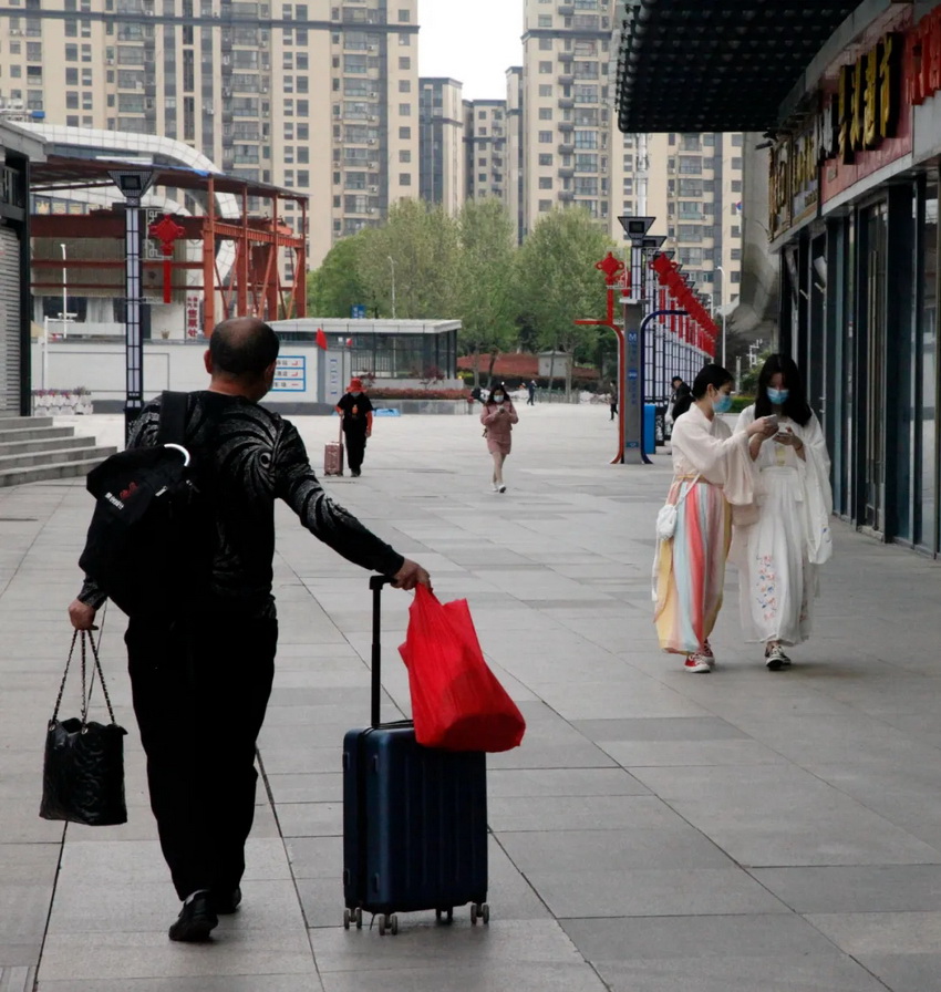 Photo taken on April 8 shows travelers and passers-by at the Wuhan Railway Station. (By Chai Xuan, China Photographers Association)