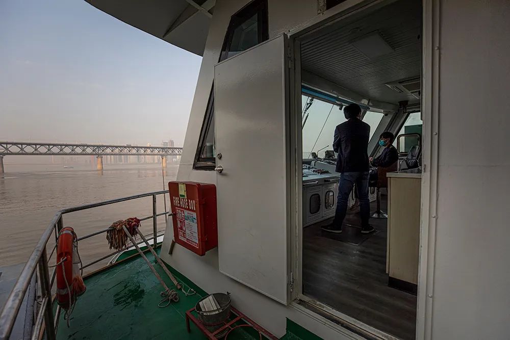 On April 8, two ferry drivers chat before setting off at Wuhan’s Zhonghua Road Wharf. (By Chen Liming, China Photographers Association)