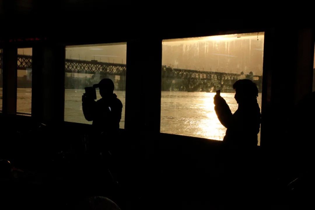 Citizens take pictures at a ferry setting off from the Zhonghua Road Wharf. (By Chai Xuan, China Photographers Association)