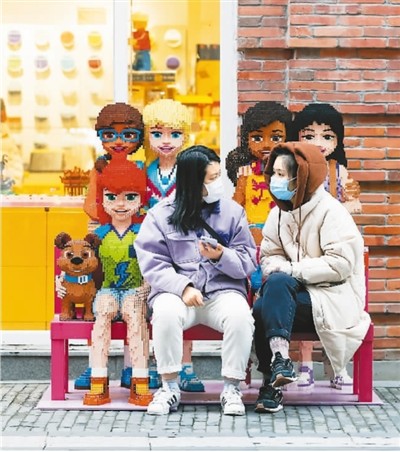 Two girls chat with each other at a commercial street in Wuhan. (Photo/Xinhua)