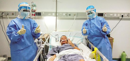 A medical team from southeast China’s Fujian province worked together with Zhou’s team to treat Xiao Wei. Thanks to all efforts, the man was able to breathe on his own on April 3, and talk five days later.