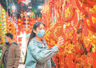A woman selects commodities in a market in Zhengding county in Hebei province. (People's Daily/Shi Zhiqiang)