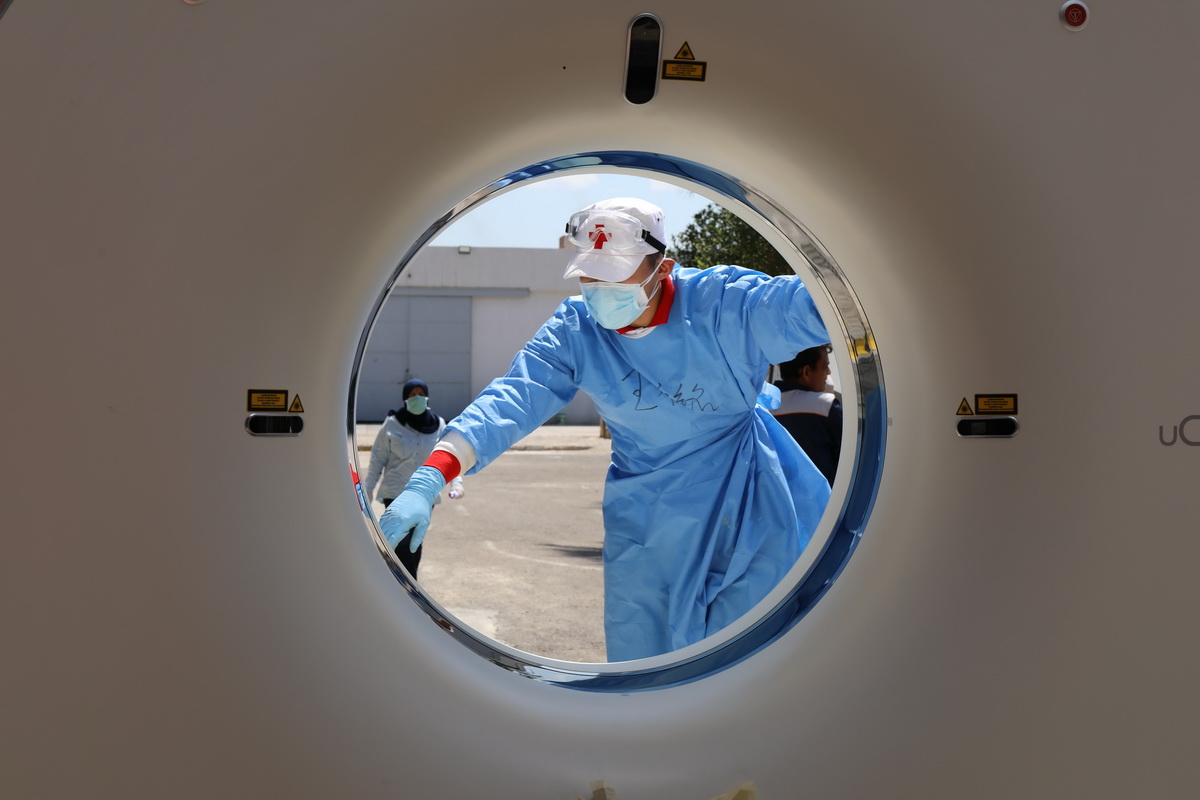 Imaging examination is a crucial means to the screening and diagnosis of COVID-19 cases, a valuable experience accumulated in China's epidemic prevention and control. The Chinese medical team sent by the Red Cross Society of China (RCSC) to Iraq to help fight COVID-19 seeks to replicate this experience by setting up CT equipment at the novel coronavirus rehabilitation center in eastern Baghdad.
