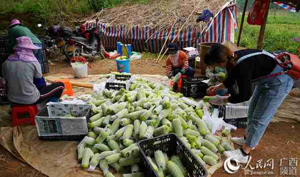 Villagers package loofah gourds. (Photo courtesy of the Party organization department of Qinnan district)