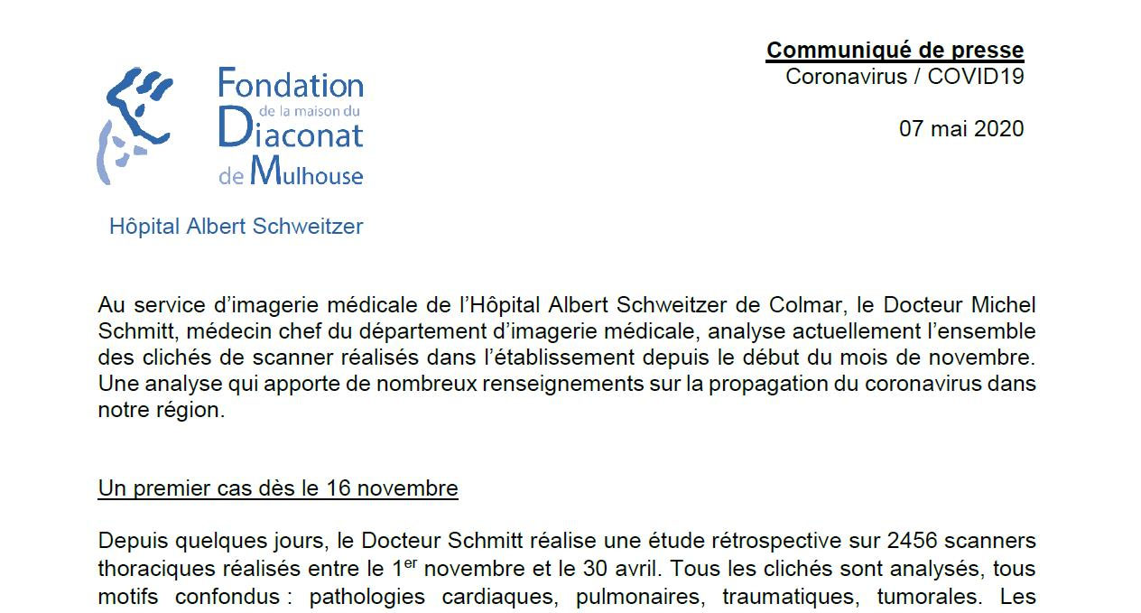 Michel Schmitt, chief medical officer of the Medical Imaging Department at the Albert Schweitzer Hospital, conducted a retrospective study on all the 2,456 chest scans done in his department between November 1 and April 30 with different pathologies, including pulmonary, cardiac, and traumatic.