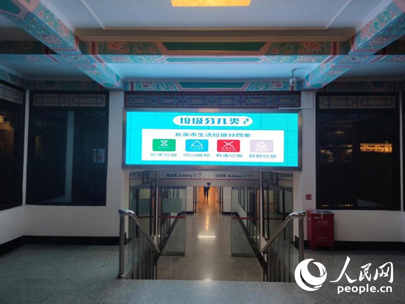 An electronic billboard popularizing garbage sorting knowledge at the Friendship Hotel.