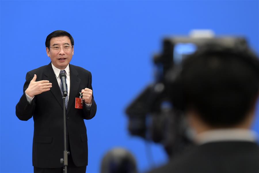 Chinese Minister of Industry and Information Technology Miao Wei gives an interview via video link after the second plenary meeting of the third session of the 13th National People's Congress (NPC) at the Great Hall of the People in Beijing, capital of China, May 25, 2020. (Xinhua/Li He)
