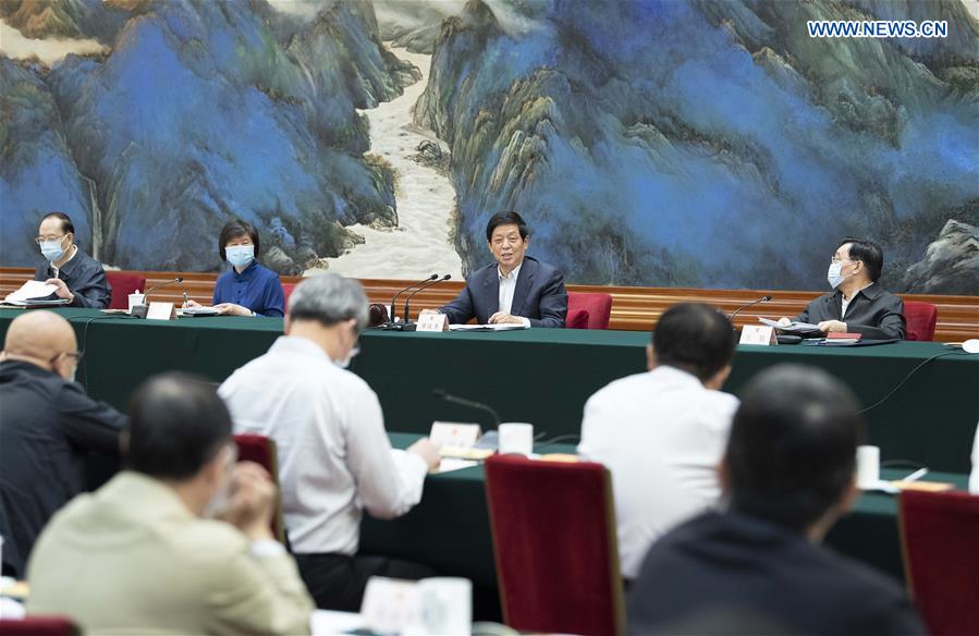 Li Zhanshu, a member of the Standing Committee of the Political Bureau of the Communist Party of China Central Committee and chairman of the Standing Committee of the National People's Congress (NPC), presides over the first plenary meeting of the inspection teams on the enforcement of the wildlife protection law in Beijing, capital of China, May 30, 2020. (Xinhua/Li Tao)