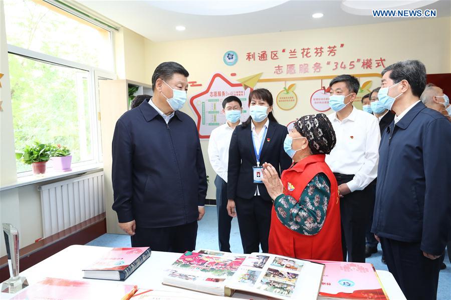 YINCHUAN, June 9 (Xinhua) -- Xi Jinping, general secretary of the Communist Party of China (CPC) Central Committee, hailed community volunteers' work while visiting the Jinhuayuan community of Litong District in Wuzhong City, northwest China's Ningxia Hui Autonomous Region Monday.
