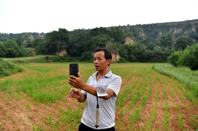 Early in the morning, Guo Jinping, a farmer who is almost 60 years old, attaches her smartphone to a tripod in her field in Lingtou village of Wuxiang county, north China's Shanxi province, as she prepares to start a live-streaming show.