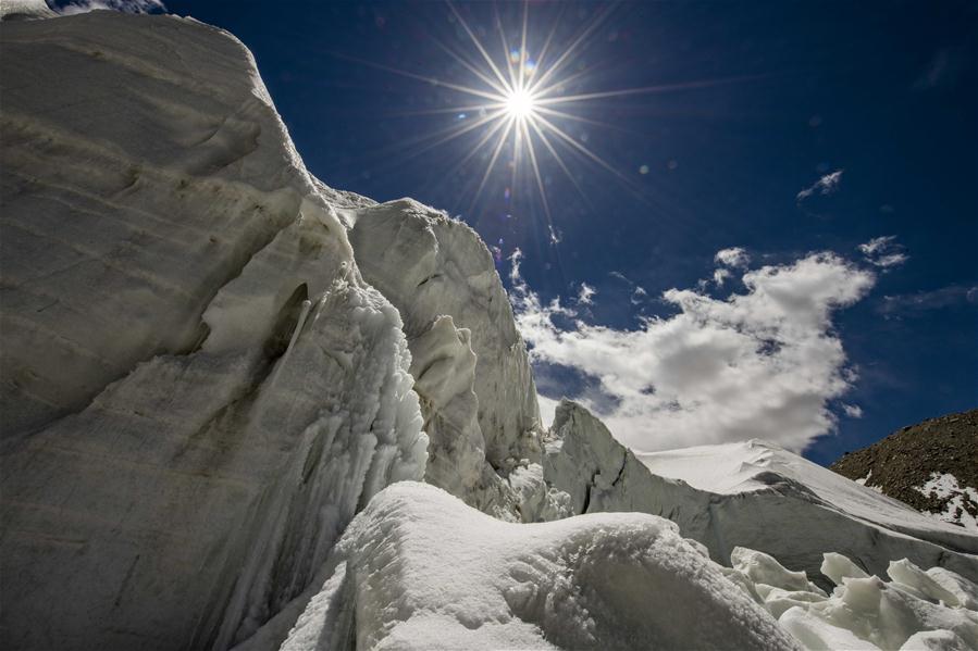 Photo taken on June 19, 2020 shows the glacier on Mount Muztagata on the Pamir Plateau, northwest China's Xinjiang Uygur Autonomous Region. (Xinhua/Hu Huhu)