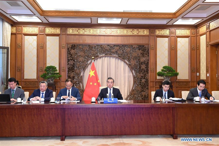 BEIJING, June 24 (Xinhua) -- Chinese State Councilor and Foreign Minister Wang Yi held a video conference on Wednesday with Iranian Foreign Minister Mohammad Javad Zarif, saying that China stands ready to promote bilateral relations to a new level.
