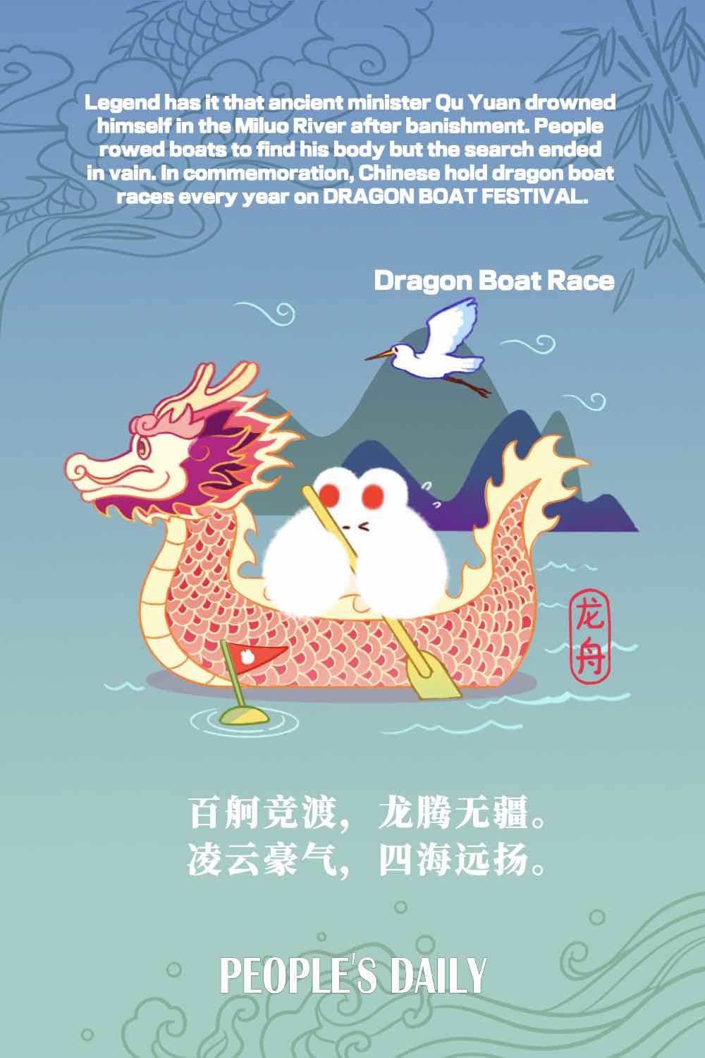 Dragon-boat racing is an essential activity during the Dragon Boat Festival. It was prevalent in the States of Wu, Yue and Chu in ancient times, and it remains prevalent in the southern coastal areas of China today. As early as 7,000 years ago, ancient inhabitants constructed canoes by hollowing out logs and used wooden paddles to maneuver themselves on the water. Dragon boat races are generally held after a grand sacrificial ceremony, where people worship and make sacrifices to the dragon god. In the past, the atmosphere of the celebration was quite serious. People prayed for blessings, good weather and future luck. In some places, there are also dragon boating rituals to worship Qu Yuan.
