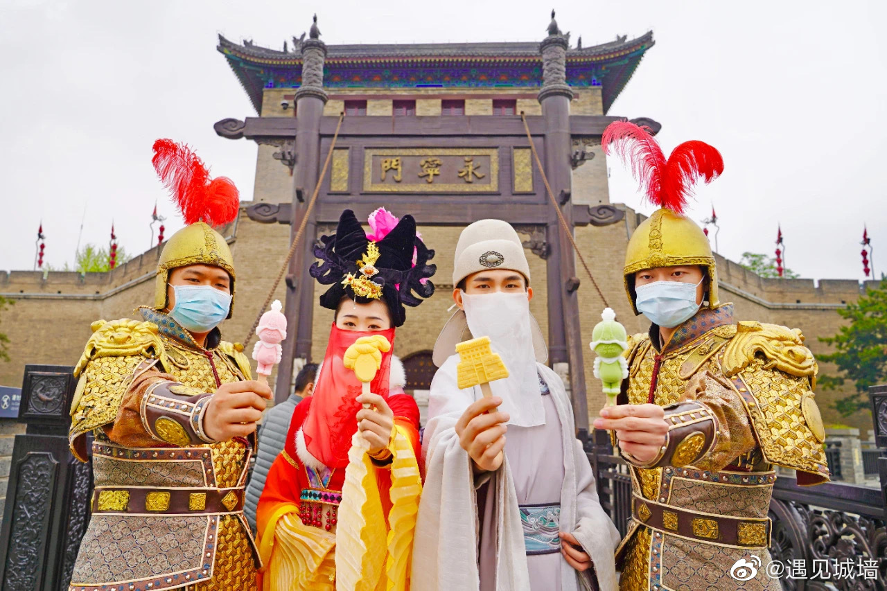 Staff members of the Xi'an City Wall scenic spot hold the ice cream inspired by the city wall. Photo from the Weibo page of the scenic spot