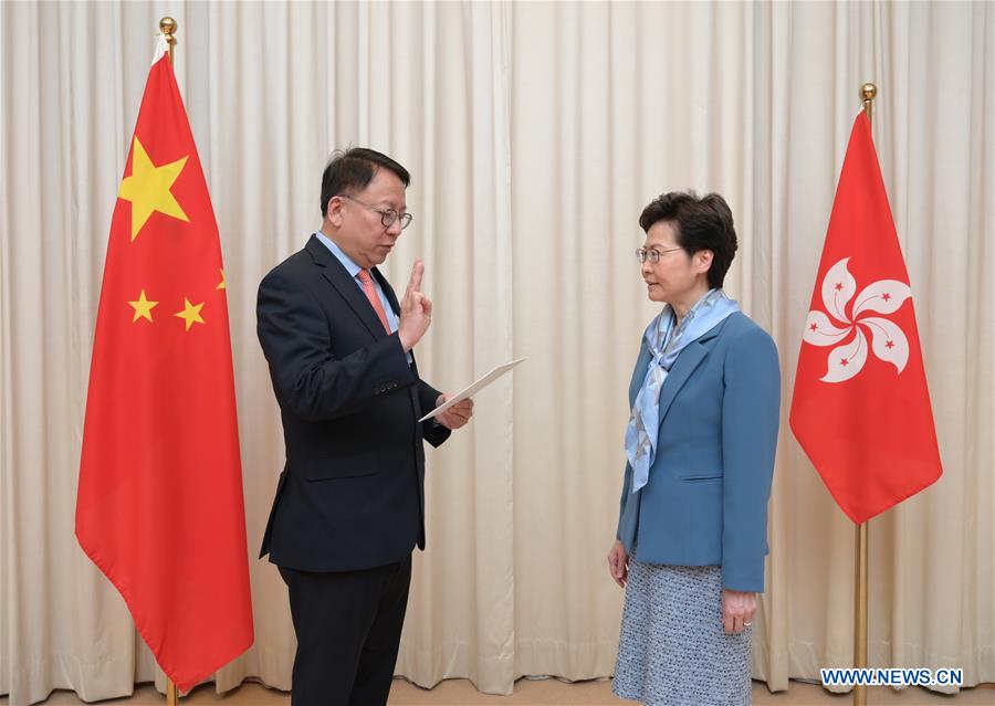 HONG KONG, July 2 (Xinhua) -- Director of the Hong Kong Special Administrative Region (HKSAR) Chief Executive's office Chan Kwok-ki was sworn in Thursday as the secretary general of the Committee for Safeguarding National Security Law in the HKSAR, said the HKSAR government Information Services Department.