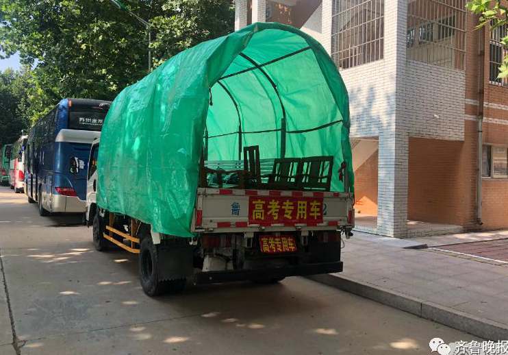 Unlike the usual passenger buses for students taking college entrance exams, the "convertible" is in fact a pickup truck installed with a sunroof and two wooden benches inside.