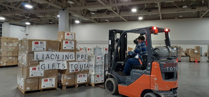 Anti-pandemic materials donated by China’s Liaoning province to Utah arrive at Utah’s Salt Palace Convention Center, April 17. Photo courtesy of the Chinese Embassy in the U.S.