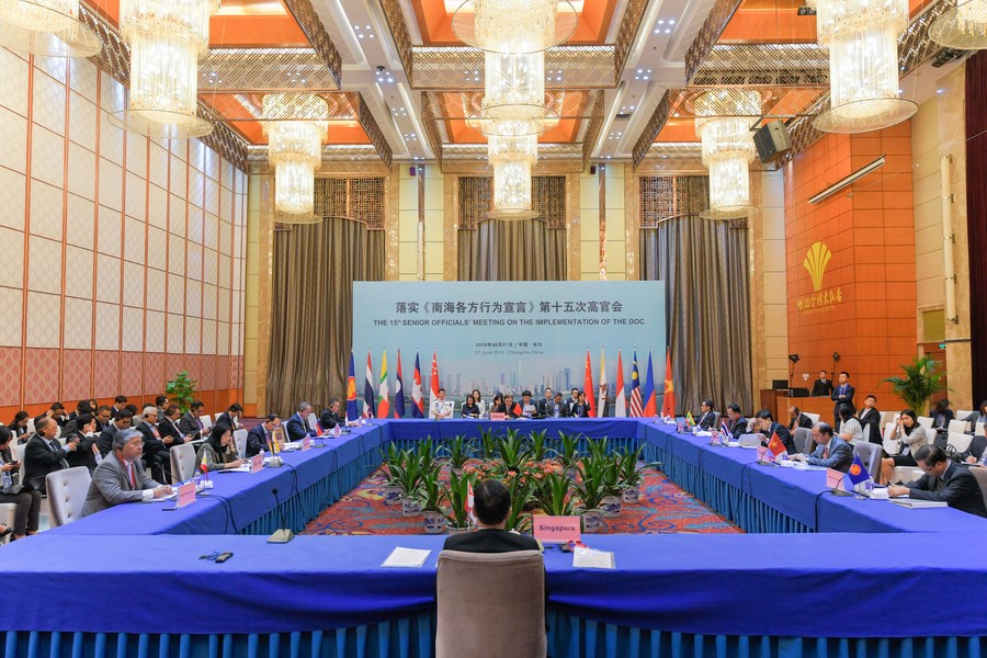 File photo shows the 15th Senior Officials' Meeting on the Implementation of the Declaration on the Conduct of Parties in the South China Sea is being held in Changsha, central China's Hunan Province, June 27, 2018. (Xinhua/Zhang Xiaoyu)