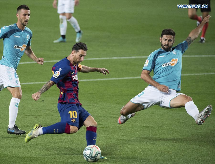 Barcelona's Gerard Pique reacts after missing a goal during the 2019-2020 Spanish La Liga football match between Barcelona and Osasuna in Barcelona, Spain, July 16, 2020. (Photo by Joan Gosa/Xinhua)