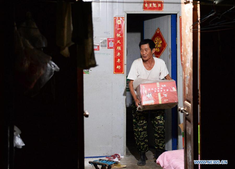 A villager transfers family belongings during an emergency evacuation in Gaotai Township which lies within the Mengwa Flood Detention Area in Funan County, east China's Anhui Province, July 19, 2020. Hydrological authorities have issued a red alert for floods in the Huaihe River drainage area on Monday. An emergency evacuation was organized between late Sunday and early Monday for residents in the Mengwa Flood Detention Area to prepare against upcoming floods. (Xinhua/Huang Bohan)