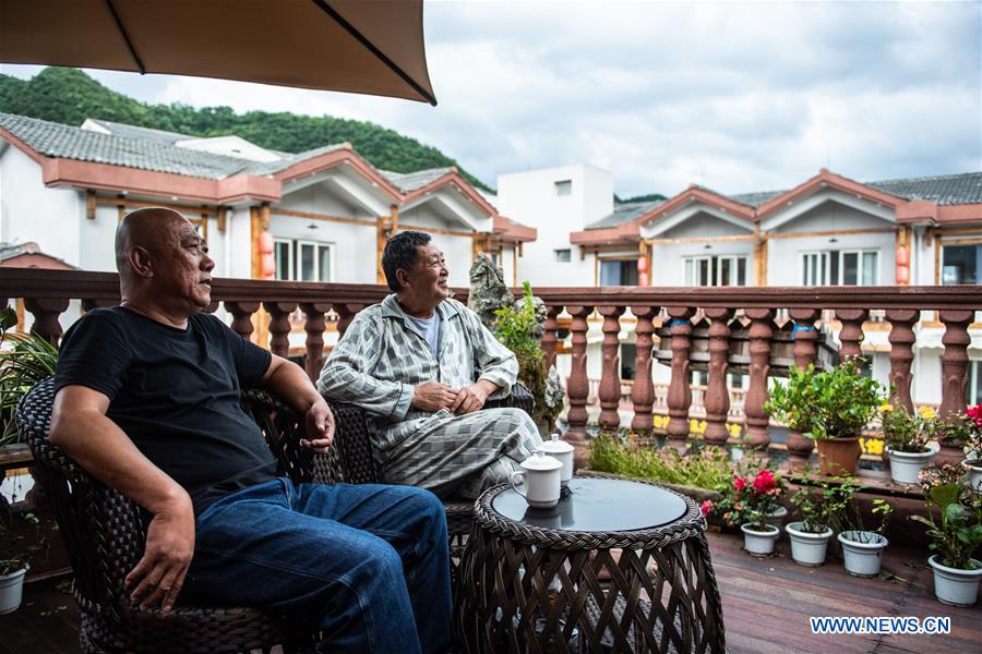 Tourists spend their leisure time at a countryside hostel in Shanbao community of Jiuba Township, Tongzi County, southwest China's Guizhou Province, July 21, 2020. Rural development in Tongzi County has gained new momentum in recent years as efforts are put into local tourism which features beautiful countryside hostels. So far, more than 500 locally registered poverty-stricken rural residents have been directly employed in the tourism industry. Meanwhile, some 6,000 others have seen their income rise while working in tourism-related businesses. (Xinhua/Tao Liang)