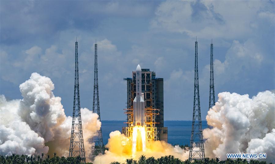 A Mars probe is launched on a Long March-5 rocket from the Wenchang Spacecraft Launch Site in south China's Hainan Province, July 23, 2020. (Xinhua/Yang Guanyu)