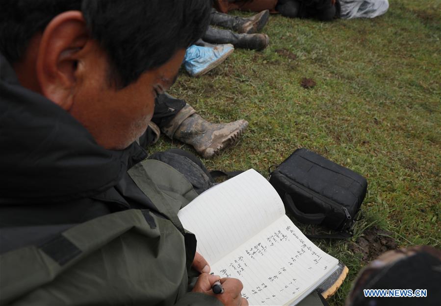 A representative of local herdsmen records the numbers of the livestock brought to the pasture Qianyangya in Koce Township of Gannan Tibetan Autonomous Prefecture, northwest China's Gansu Province, July 25, 2020. Since the 1980s, the pasture in Koce Township has been used as an area to reunite lost and found livestock with their owners. Once a year, local herdsmen gather here for one day to bring the livestock they have found while herding and look for their lost ones by identifying the body marks on cattle or sheep. The livestock can be brought home when their ownership is confirmed by most attendees. So far, over 20,000 lost and found livestock have returned to their owners. (Xinhua/Du Zheyu)