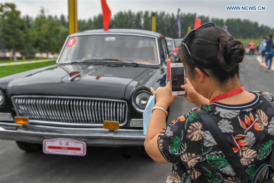 A visitor takes pictures of a limousine during an event showcasing the products and culture of China's iconic auto brand Hongqi in Changchun, northeast China's Jilin Province, July 28, 2020. (Xinhua/Zhang Nan)