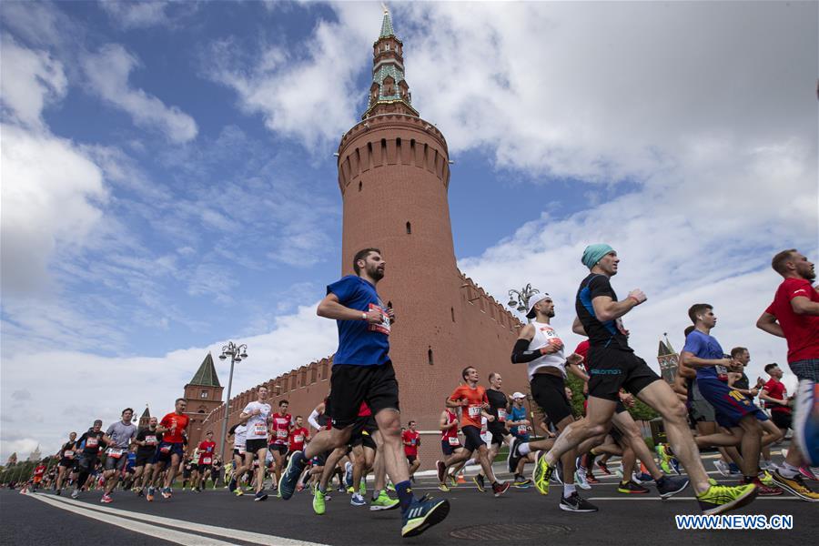 Runners compete during the Moscow Half Marathon in Moscow, Russia on Aug. 2, 2020. (Photo by Alexander Zemlianichenko Jr/Xinhua)
