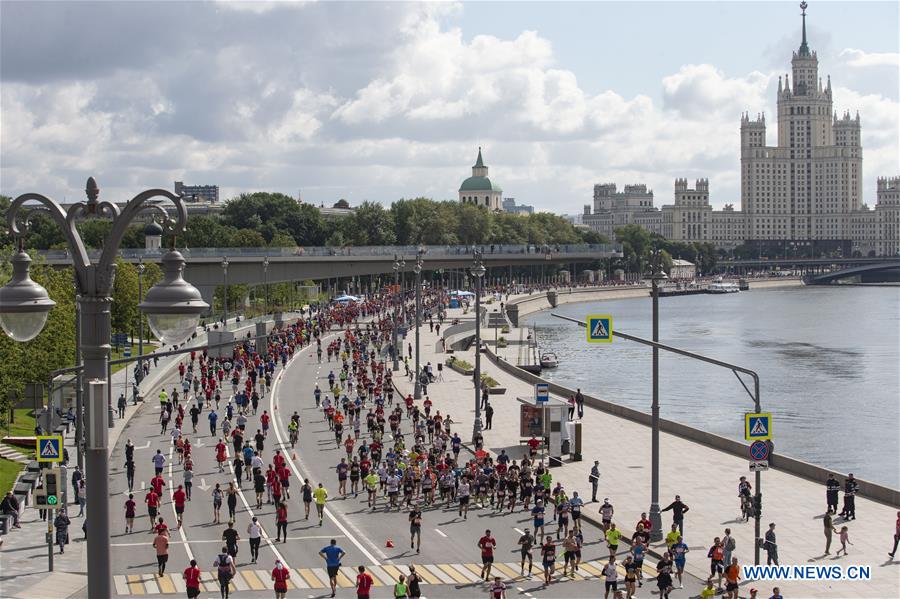 Runners compete during the Moscow Half Marathon in Moscow, Russia on Aug. 2, 2020. (Photo by Alexander Zemlianichenko Jr/Xinhua)