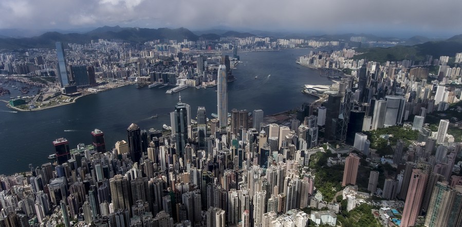 Aerial photo taken on July 16, 2020 shows Victoria Harbor in Hong Kong, south China. (Xinhua/Lui Siu Wai)