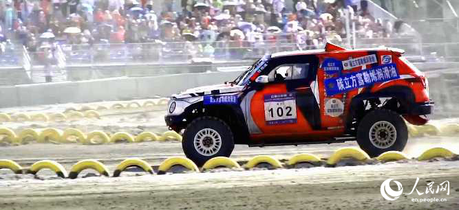 An off-road vehicle races at the racetrack in Xinqiu District of Fuxin, northeast China's Liaoning Province.