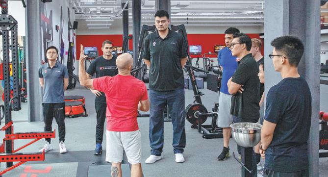 Chinese Basketball Association chairman Yao Ming visits the UFC Performance Institute in Shanghai after its opening in June 2019. PROVIDED TO CHINA DAILY
